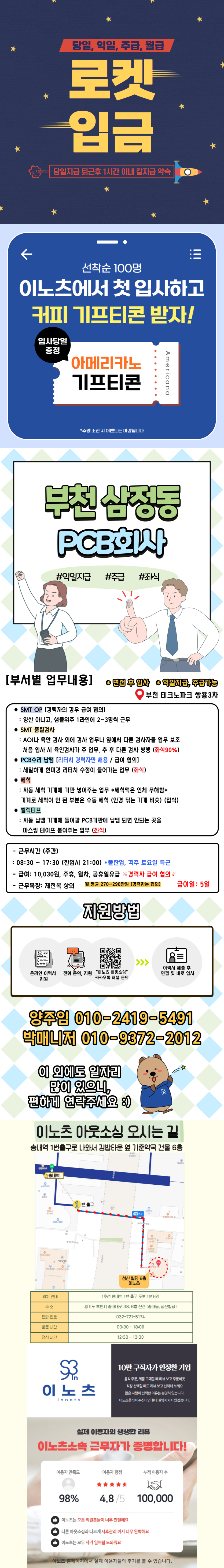 부천 PCB 회사 채용 모집!!! 페이지 정보 작성자 관리자 댓글 0건 조회 490회 작성일 25-06-19 11:28 본문 . 목록 목록 이전글인천 남동구 반도체 계약직!!! 25.06.19 다음글부평 갈산 키오스크 내근직 채용 모집!!! 25.05.28 댓글 0 댓글목록 등록된 댓글이 없습니다.