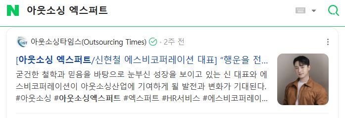 2025년 대한민국 아웃소싱 100대기업 선정에 이어 아웃소싱 엑스퍼트에 선정 되었습니다.