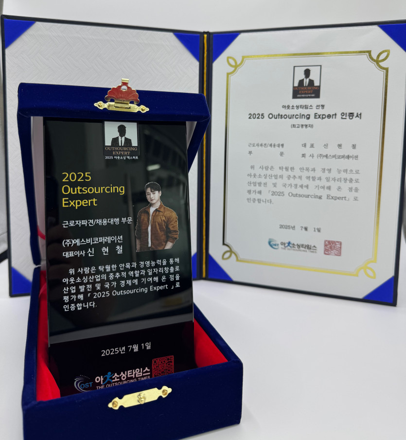 에스비코퍼레이션 2025년 아웃소싱 엑스퍼트 선정