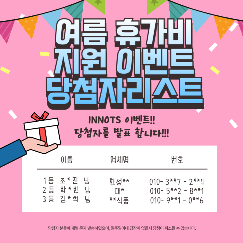 여름휴가비 지원 이벤트 당첨자 발표!!!
