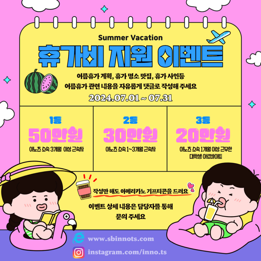 홈페이지 및 인스타 그램에 자유롭게 댓들 달고, 여름 휴가비 받아가세요^^!!