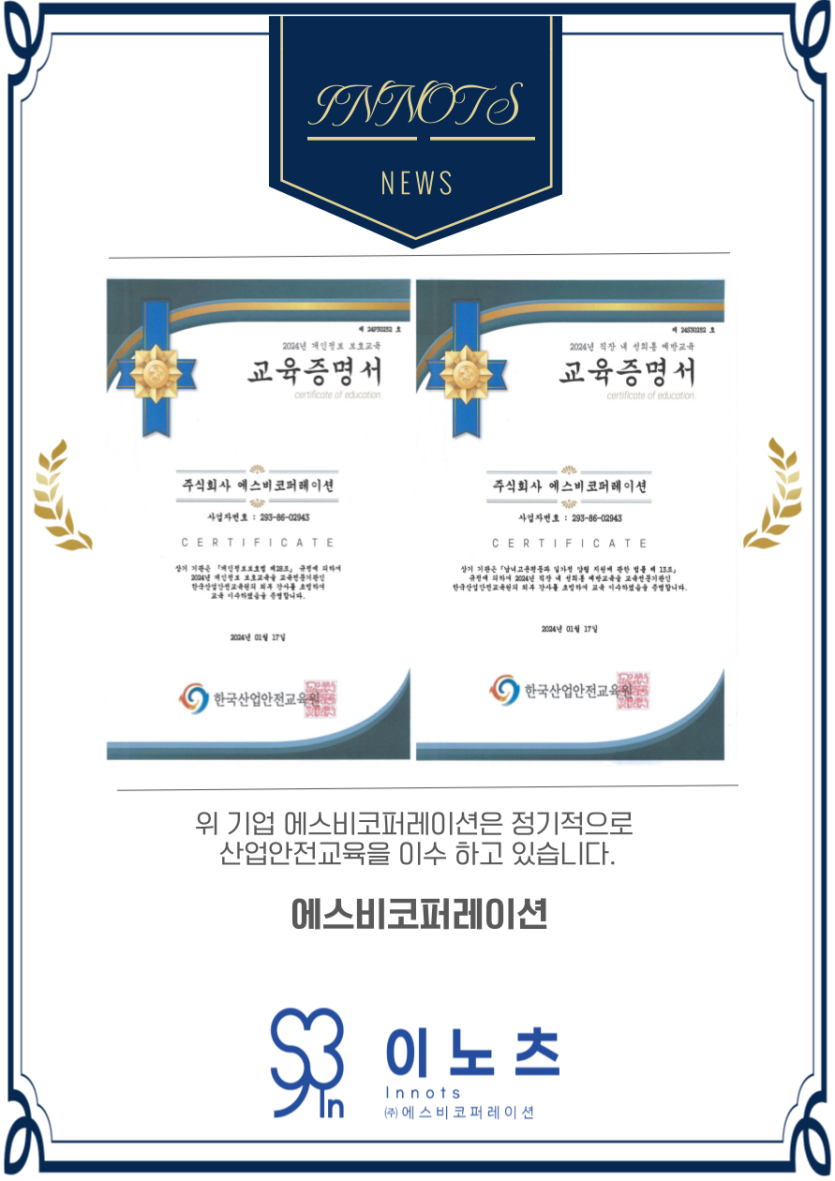 산업안전교육 이수증 페이지 정보 작성자 최고관리자 댓글 0건 조회 75회 작성일 25-04-16 15:33 본문 산업안전교육 이수증 목록 목록 이전글HR서비스 명칭 '이노츠(INNOTS)' 상표등록 (특허청) 25.04.16