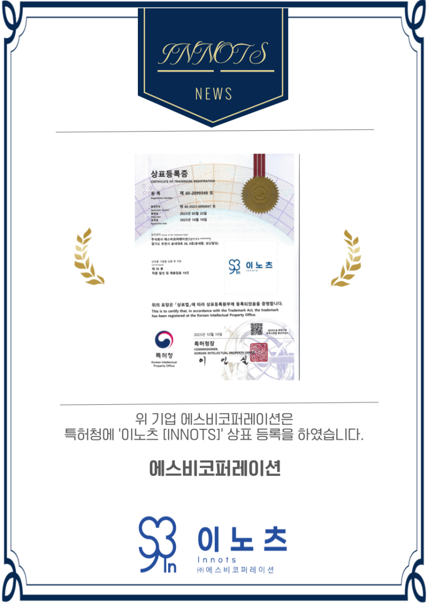 HR서비스 명칭 '이노츠(INNOTS)' 상표등록 (특허청)