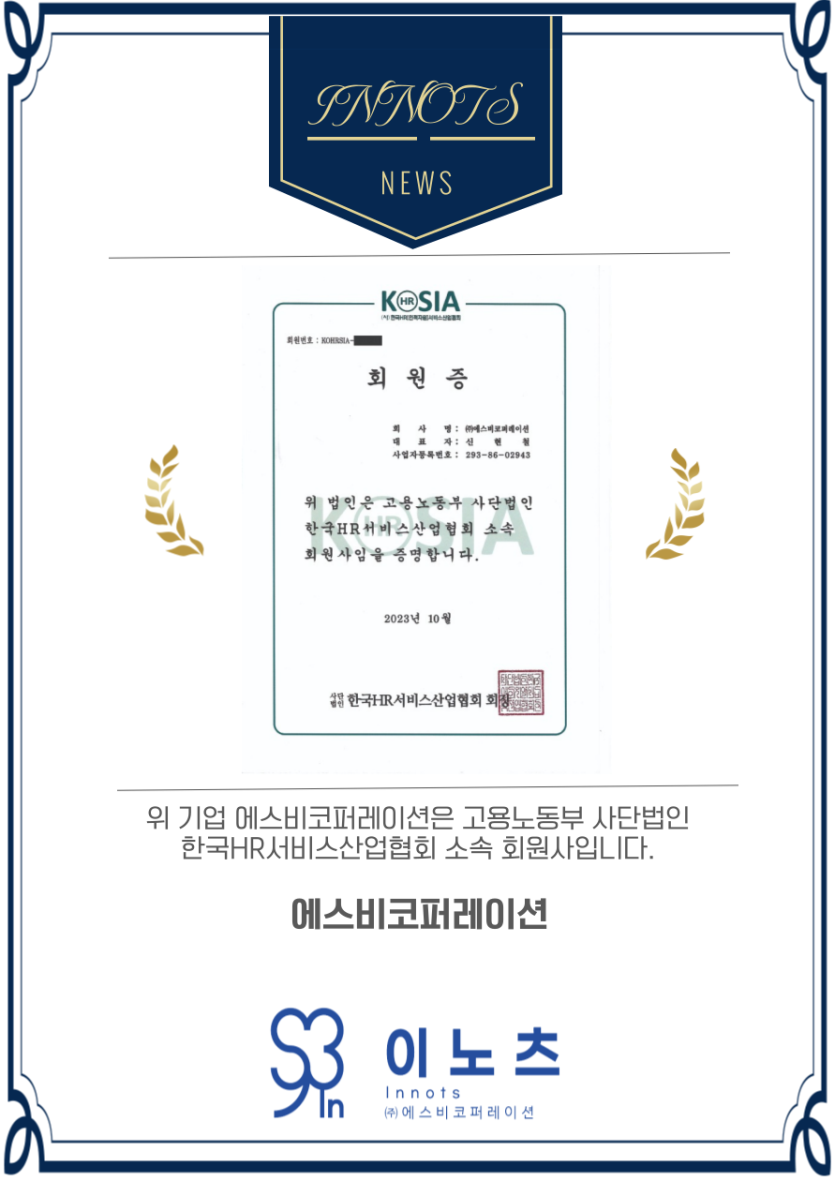 - 다음글HR서비스 명칭 '이노츠(INNOTS)' 상표등록 (특허청) 25.04.16
