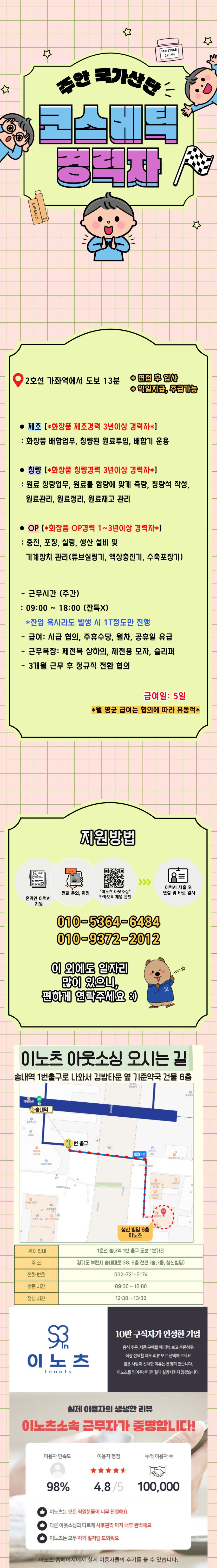 서구 가좌&가재울역 화장품 생산회사 경력자 모집!!! 페이지 정보 작성자 관리자 댓글 0건 조회 103회 작성일 26-03-04 17:32 본문 . 목록 목록 이전글부천 내동 검수포장 사원모집!!! 26.03.04 다음글상동 뷔페 홀서빙 사원모집!!! 26.03.04 댓글 0 댓글목록 등록된 댓글이 없습니다.